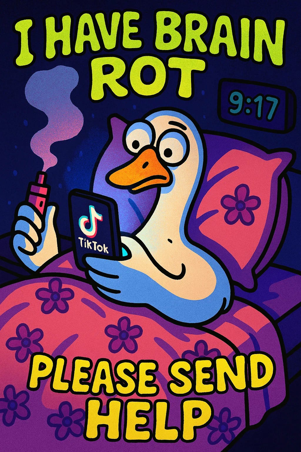 I was talking about brain rot. I am living the rot. I was reading a linkedin post by someone calling out career karens saying that Brain Rot is more at home in Gen X facebook feeds and and AI News cycles - but the things that Vogue is calling the brain rot aesthetic (Labubus, Erewhon drinks, MAtcha Lattes, whatever) aren’t brain rot aesthetic AT ALL.